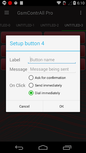 - Setiap tombol dapat dikonfigurasi untuk mengirim SMS secara langsung, memutar nomor, atau bertanya.