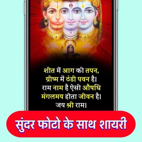 Shri Ramchandra ji is considered to be the best in Hinduism. We have brought shayari on the devotion of Shri Ram for the devotees of Shri Ram. You can easily use this app and make a beautiful devotional shayari wallpaper and share it as a photo status card on social media as your status profile.