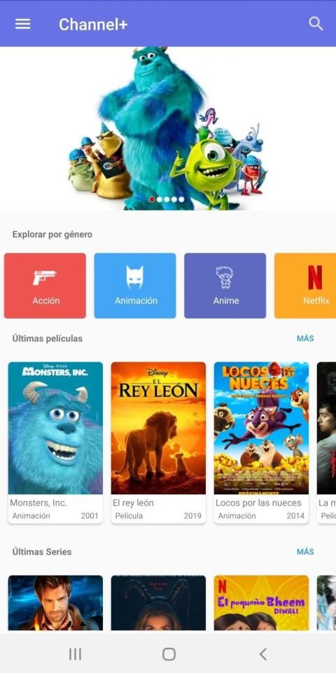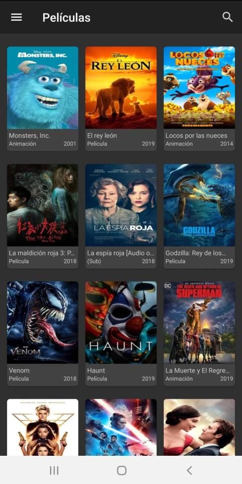 Esta app contiene un catalogo, con clasicos y ultimos estrenos organizados en categorias