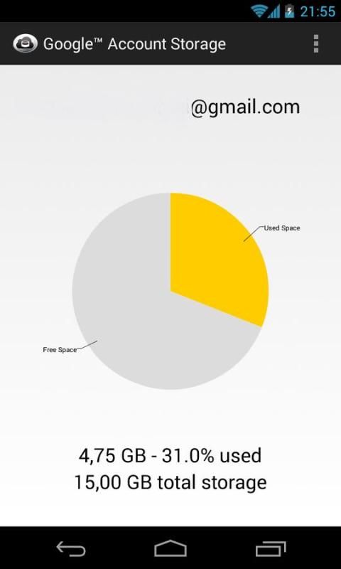 Saat ini Google ™ memberikan ruang bersama oleh Gmail ™, Google ™ dan Foto Google Drive ™, dengan aplikasi ini kita akan selalu diberitahu tentang ruang yang tersedia pada setiap akun Google ™ tunggal terdaftar pada perangkat kita.