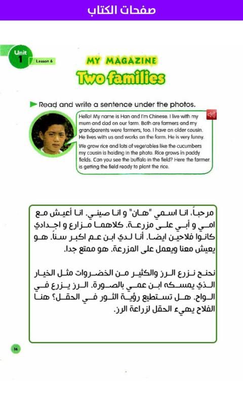 تطبيق يتضمن التلفظ الصحيح للكلمات و المحاورات للصف السادس الابتدائي
