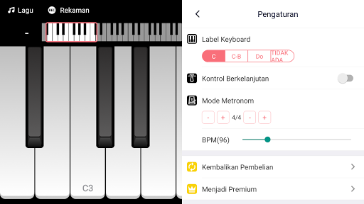 - Metronom dengan Mode dan BPM dapat disesuaikan