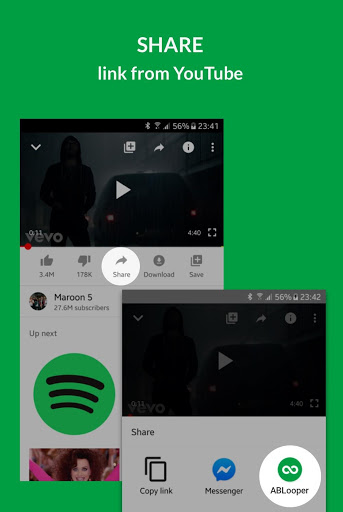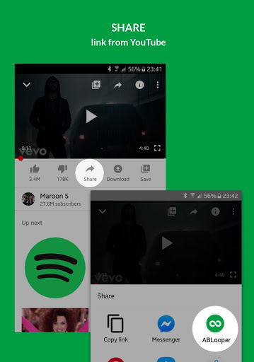 : You are learning a new guitar lick to a song, watching your favorite musician on YouTube? Share the video with the ABLooper app and manage your learning. Loop selected parts and practice them to perfection!