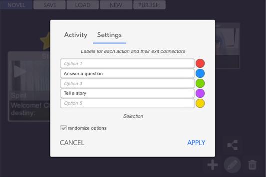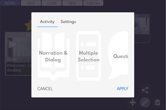 ● Choose between different behaviours like narration and dialog, multiple selection, question and more