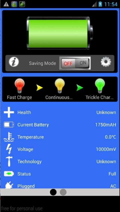Show Stats battery easily (details as temperature, voltage, technology, health and usage). See the percentage of remaining battery in your status bar, and easily optimize your device when needed.