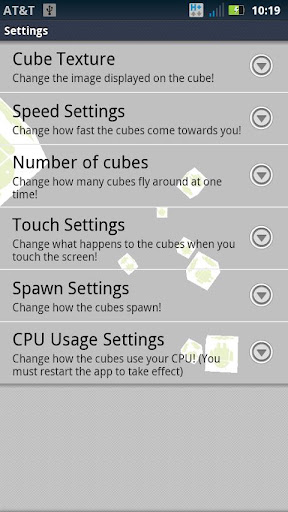 Ini adalah wallpaper hidup yang sangat keren, dibuat sendiri Ben Paul, yang benar-benar bernilai $ 0,99!Wallpaper ini akan melempar sekelompok kubus 3D tepat pada Anda!Serangan 3D Cube Onslaught ini pasti akan membuat ponsel Android Anda menonjol dari yang lain!Memilih dari berbagai pengaturan, Anda dapat membuat wallpaper ini dan memilikinya bagaimana Anda menginginkannya.
