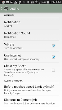 - Distance before reach to speed camera can be configured(default 0.2 mile).