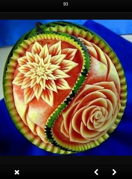 Fruit Carving adalah salah satu seni mengukir buah buahan ini. biasanya disajikan dalam acara besar seperti membuat tumpeng nasi kuning. Seni ini merupakan andalan pariwisata negara thailand. Thailand dikenal sebagai salah satu negara penghasil buah buahan terbaik di dunia. sehingga tidak asing bila seni ini sangat dikembangkan di negara thailand. Buah buahan yang biasa digunakan antara lain buah melon, semangka, mentimun, jeruk, wortel, tomat, dan lain- lain. Tak hanya kayu dan batu saja yang bisa di ukir. Buah-buahan pun menjadi sangat cantik dan menarik ketika disentuh oleh tangan para seniman fruit carving. Dengan cekatan para seniman ini menjadikan buah-buahan utuh berubah menjadi layaknya patung yang memiliki nilai seni tinggi. Inilah Fruit Carving, sebuah seni dalam menghidangkan makanan dengan keindahan, biasanya media yang digunakan adalah buah-buahanan yang berbentuk bulat serta memiliki tekstur yang lunak. Menghias atau menggarnish ini mempunyai keahlian khusus, karena di samping membutuhkan keahlian, ketelatenan, dan daya imajinasi yang kuat, juga membutuhkan orang yang memang memiliki jiwa seni yang tinggi.