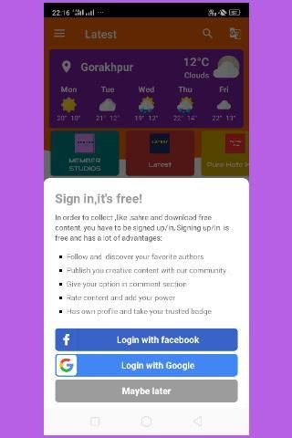 You can enter in this app without log in to Facebook Or Gmail account.
