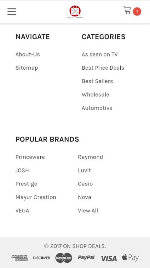 OnshopDeals yang Dimiliki oleh Josh Produk India (Pendiri - CJ) dan didirikan pada Mei 2014, Onshopdeals menyediakan pelanggan dengan platform tunggal dan sistem manajemen persediaan tunggal, produk yang akurat dengan minimum kemungkinan pengembalian melalui jaringan waralaba mereka di seluruh India.