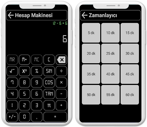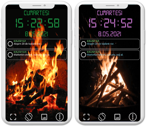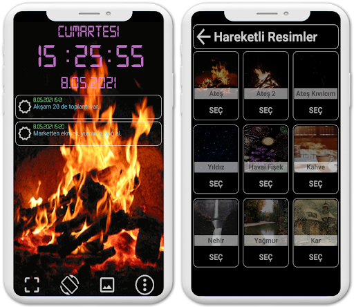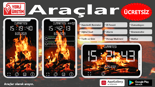 * Gambar bergerak * Waktu digital * Tanggal & hari * Senter * Alarm * Kalkulator * Timer * Stopwatch * Catatan