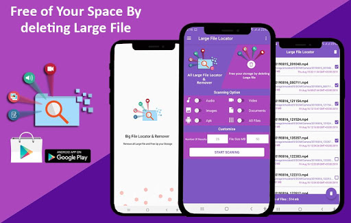 Now a day its very difficult to Organize your Mobile Storage Most of the time very large file take space on your mobile storage which is just a junk file and not neccessary at all we bring such a nice tools called Big files Locator & Remover which find out all the large file easily. Large File Locator help you to locate those large files in phone which is not needed at all and delete them fast and safely . Cleaning large media or image files can help you to organize your storage space and free up storage . Big Files Locator and Cleaner analyze the memory of your phone search for large file with set of quantity and size .