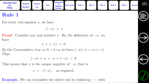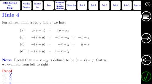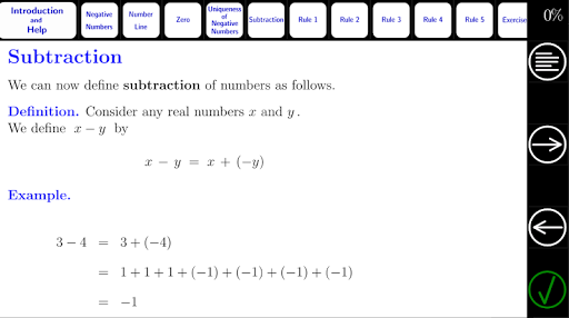 We then introduce rules that can be used to simplify expressions involving negative numbers and subtraction (proofs are given for advanced students).