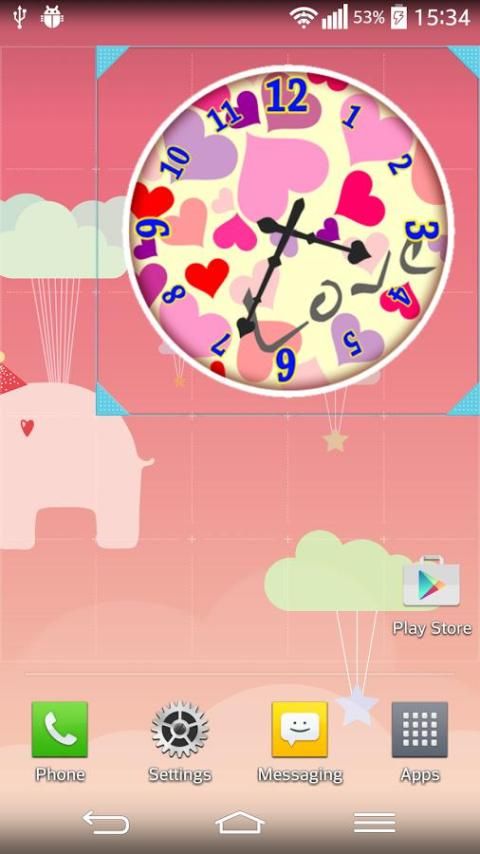 ✸ Tekan pada cinta "jam analog" dan tahan untuk skala dan memindahkan widget baru Anda!