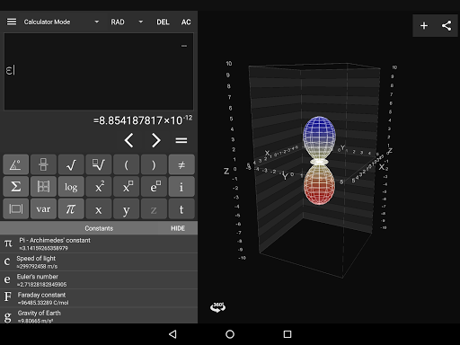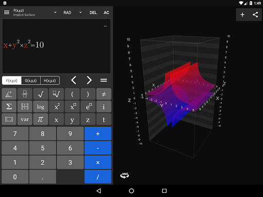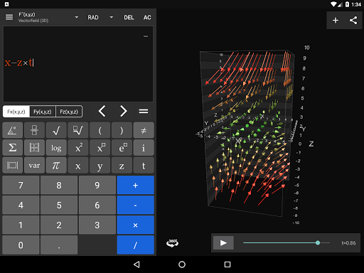 Visual Math 4D Lite is a graphical calculator that allows you to visualize and solve your mathematical equations. It supports various types of equations, such as spherical, parametrical, polar and cartesian equations, which can be visualized and animated in 2D and 3D.