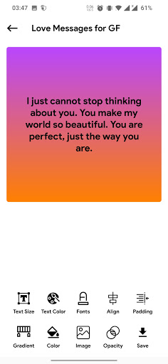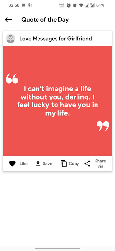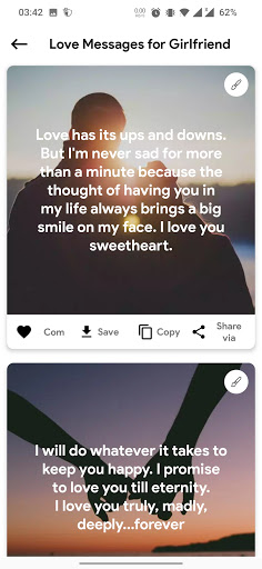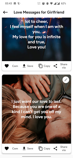 Unduh aplikasi ini sekarangDan dapatkan akses ke koleksi besar pesan cinta kami kutipan cinta dan keterangan gratis!Dengan menggunakan aplikasi ini, Anda dapat berbagi semua jenis status dengan tunangan Anda, pacar pacar pacar melalui situs media sosial.