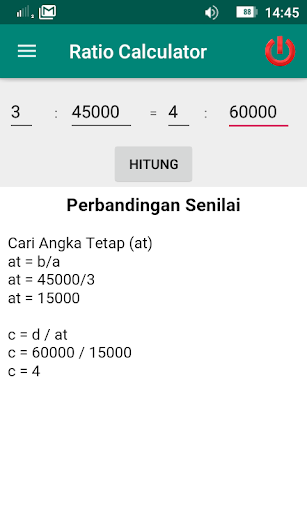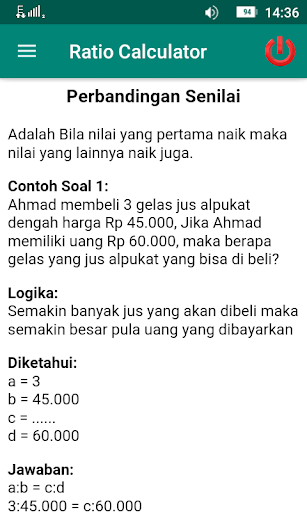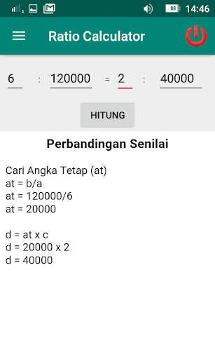 Aplikasi ini menghitung perbandingan senilai, tak senilai, perbandingan dengan jumlah serta perbandingan dengan selisih
