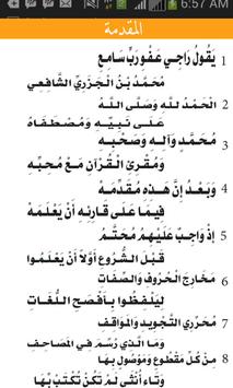 متن الجزرية هو متن الذي بحث عن التجويد مع ما مجموعه 17 فصلا و 109 موشحات، ويتكون هذا التطبيق العديد من المرافق، من بين أمور أخرى