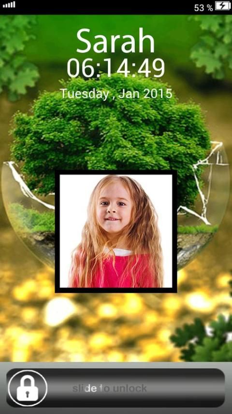 Ide yang sangat unik kunci layar untuk menampilkan foto kekasih Anda dan / nama nya di layar kunci Smartphone Anda. Kunci layar aplikasi Nama foto baru kami menyediakan fungsi ini dengan banyak fitur seperti nama set warna, mengatur latar belakang, dan waktu dan tanggal warna juga. Anda harus hanya melakukan kunjungan Play Store dan menginstal kunci layar Nama foto dan mengejutkan Anda kekasih dengan menunjukkan cinta Anda dengan dia / nya.