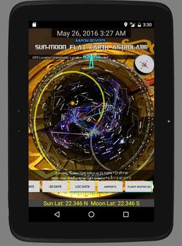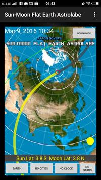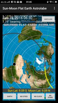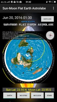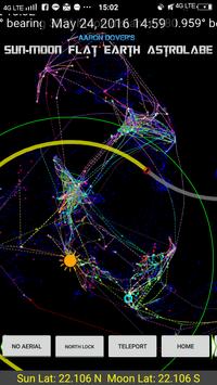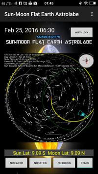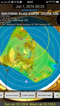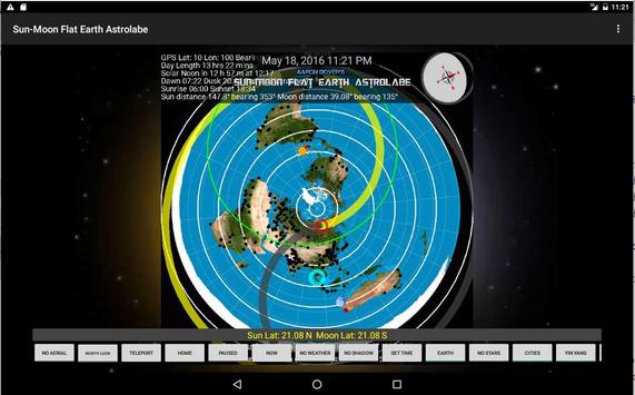 You can pinch to zoom and pan. The yin yang shows areas of night and day. So you can check where and when the sun will rise and set, and see which constellations are visible and where. The red dot shows the centre point of the moon and sun. It also shows world cities with populations >1m and which is nearest to sun and moon. You can toggle all the plates (Earth, stars, cities) on and off as well as whether the display is static or animated by a clock. Now also includes a Moon Compass and daylength calculated from the model time and your latitude if you (optionally) allow GPS permissions. You can lock the screen to North, so that upwards is North, or lock it to the compass so the map orients itself to match your North in real time. Sun and sun shadow pointers display when the Sun is in visible range of you. When used in Compass Lock the Sun and shadow pointers should align approximately with your reality! Why not use it to make a sundial! It is a sundial! Align your device with the sun shadows and press Shadow Check to see precisely what time after solar noon is implied by the bearing of the shadows. You can also optionally display live flights updated every 5 seconds. Unfortunately this only covers Europe but it shows 700 or so flights typically. Today's weather and forecasts can be displayed shown at your location. You can now press the teleport button to jump to any of hundreds of cities to see the model and weather information from their location. Now includes Aerial View which shows detailed zoomable aerial photography on a regular projection, from which you can select a city and switch location to it, or long click anywhere on the world map to select your location in the model. It also now optionally shows you the sunset/sunrise and twilight times from an independent source sunrise-sunset.org at your selected time and place so you can compare the result easily. In response to feedback Version 2 just released has has a layout change which I hope makes it work for tablets and phones... I can only test on an emulator. This application scores over mainstream scientific application in two regards, firstly it is slightly cheaper and secondly it now includes a friendly DON'T PANIC button in case what you see causes uncomfortable cognitive dissonance, which will show you over 130 of my flat Earth videos, directly in the app. You can also choose to show over 8,000 airports.