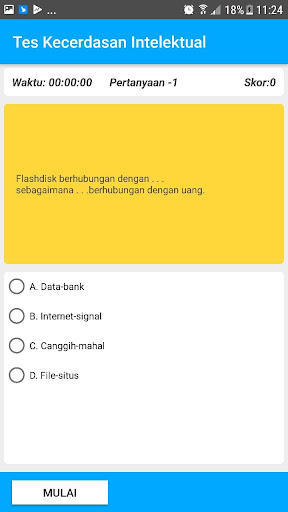Semua jawaban yang tampil tidak menjadi sebuah ukuran. Hasil akhir diperoleh dari banyaknya pertanyaan yang anda jawab. Dan untuk Hasil Tes IQ lakukanlah tes hanya pada satu kali Tes.