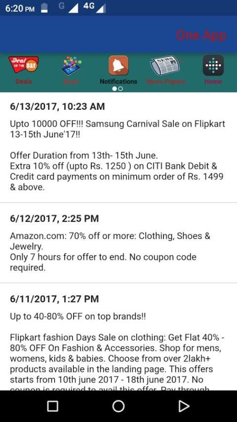 OneApp adalah Semua dalam Satu aplikasi Belanja - Harus memiliki aplikasi untuk berbelanja dari 100 + atas situs belanja online India diklasifikasikan & dikelompokkan di bawah 20 + Kategori.