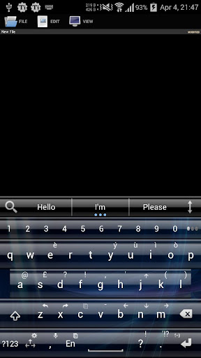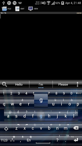 This is a skin for AI.type Keyboard application, it gives a blue and black look with keys without borders made from a transparent glass bar. As the keys are transparent you can also change the background image with one of your own.
