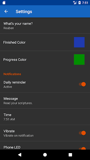You can also setup a daily reminder so that you don't forget to read your scriptures each day.