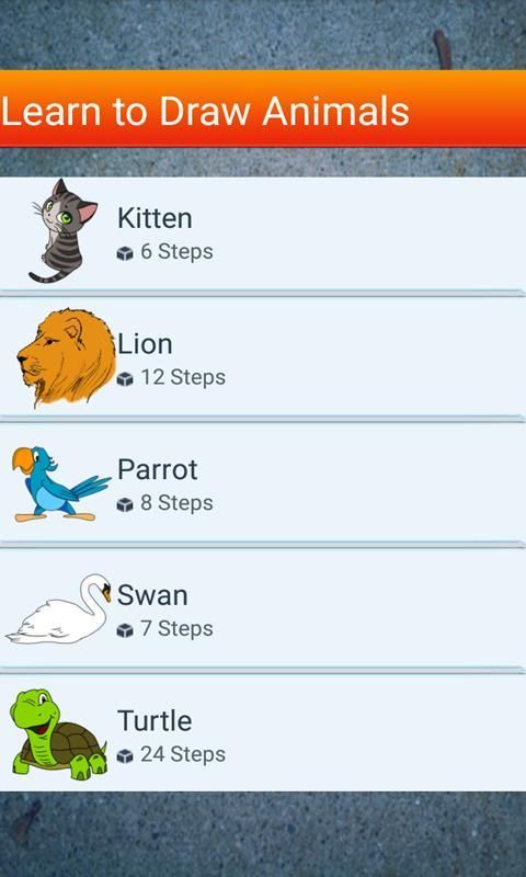 Aplikasi ini adalah langkah demi langkah instruksi yang akan mengajarkan Anda belajar menggambar Hewan. Seperti guru seni pribadi, akan mengajarkan Anda cara menggambar Gambar (Step By Step) dari gambar yang berbeda. Ini termasuk koleksi besar gambar diklasifikasikan berdasarkan tingkat kesulitan.
