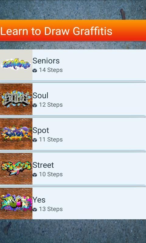 Aplikasi ini adalah langkah demi langkah instruksi yang akan mengajarkan Anda belajar menggambar grafiti. Seperti guru seni pribadi, akan mengajarkan Anda cara menggambar Gambar (Step By Step) dari gambar yang berbeda. Ini termasuk koleksi besar gambar diklasifikasikan berdasarkan tingkat kesulitan.