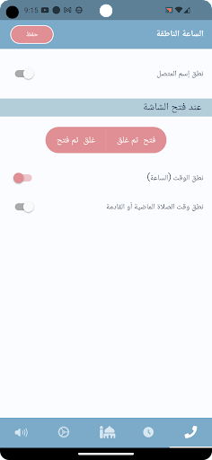 - Kemampuan untuk mengucapkan arloji dan berdoa waktu pada setiap kali telepon dibuka
