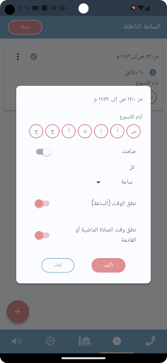 - امكانية استخدام مسميات الأوقات (صباحا، مساء، ظهرا، عصرا ، ......بدلا من صباحا، مساء فقط)