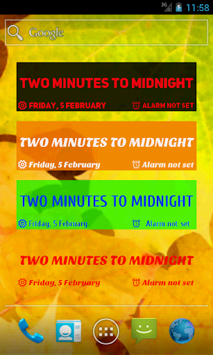 It tell phrases as in live communication (for example: two minutes to midnight). The widget has many options to customize the appearance.