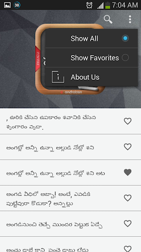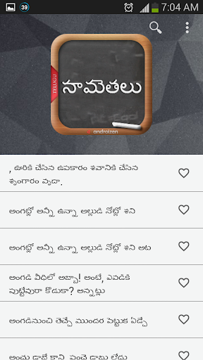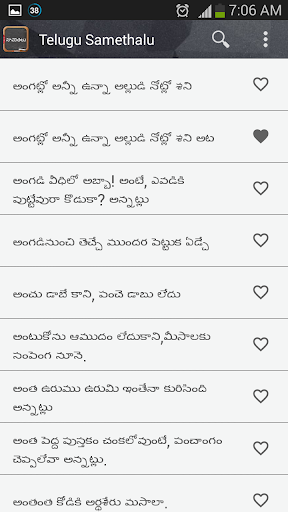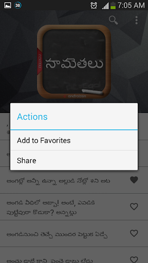3. Ability to add sametha [సామెతలు] as favorite or share with different applications using context menu.