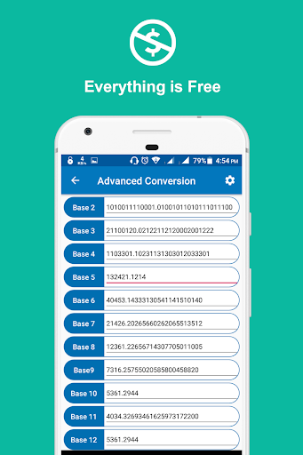 Number Base Converter Advanced is a Modern Base Converter. This has much flexibility than others. You need to manual or tutorial for using these App. Just Download And Use.