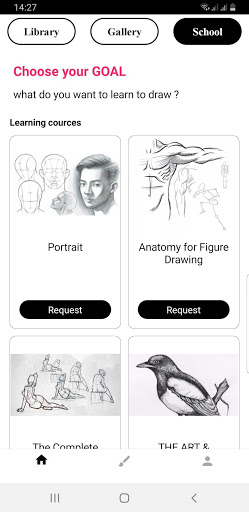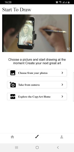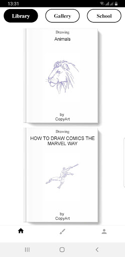 Anda dapat menggunakan kamera atau foto Anda untuk mengambil gambar dan memuatnya ke dalam aplikasi untuk memulai gambar Anda atau cukup gunakan yang dari pustaka default.Semua gambar Anda akan disimpan dengan rapi di galeri Anda di bawah folder COPYART.