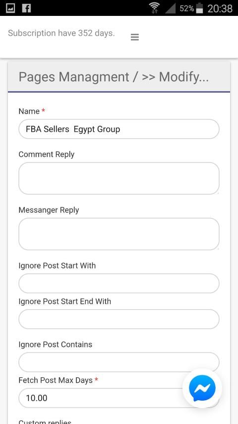 Great news for all Facebook pages admins , Our program can reply on your page clients comments on behalf of page admin also send private reply in messenger with each comment , Can also send broadcast message for all page clients at same time and more features , You can set reply for all posts in page or separate reply for each post or custom reply if some words user write in comment , also can hide user comment if some words occurred in comment , also can reply user on messenger if user write some words and can apply full bot on your page messenger , Can send broadcast message with text or image or both and deliver to all your page customers in same time , all that works 24/7 without any effort from page admin , Register now and save your money and time.