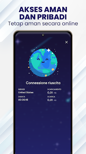Dengan ponsel Android Anda, pengguna dapat terhubung ke server VPN gratis dan unlimited tanpa biaya apapun serta menikmati koneksi yang stabil dan cepat tanpa batasan waktu atau kecepatan.