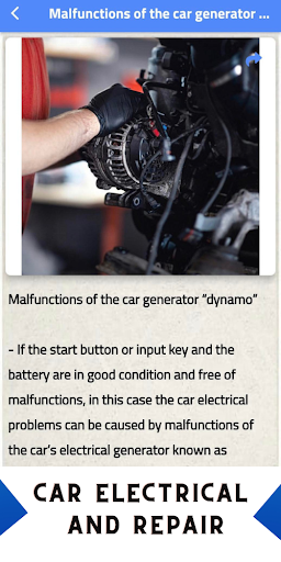 Dalam aplikasi perbaikan kelistrikan untuk mobil kami, berisi banyak masalah pada kelistrikan mobil, selain memberikan solusi yang membantu Anda menyelesaikannya tanpa campur tangan ahli teknis dan memberikan saran jika terjadimasalahnya besar dan dapat menyebabkan kerusakan yang signifikan.Aplikasi perbaikan kelistrikan untuk mobil