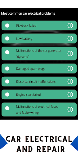 Aplikasi perbaikan kelistrikan untuk mobil kami menyajikan penyebab umum dantanda-tanda yang menyebabkan masalah pada kelistrikan mobil dan memberikan cara mengatasinya serta menjelaskan alasannya secara detail.