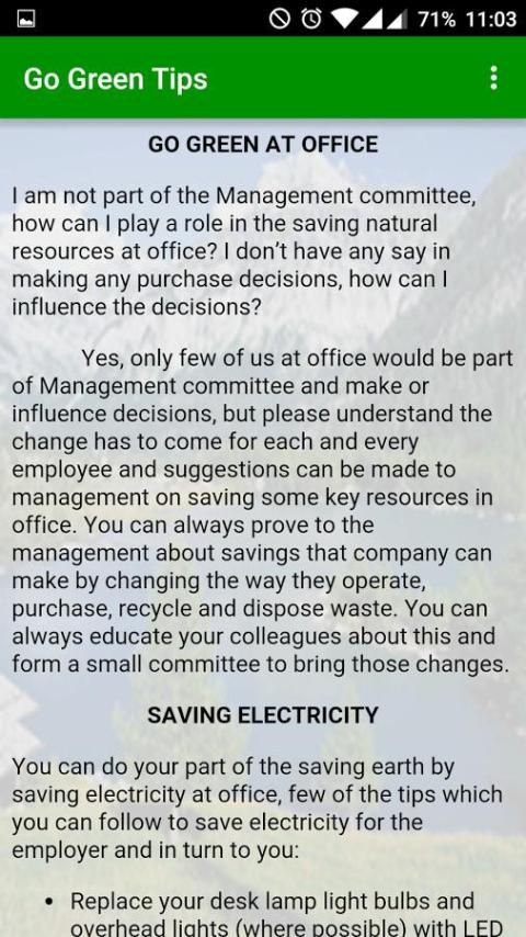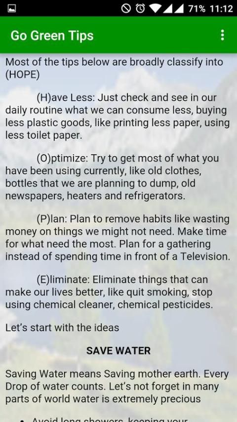 Saya ingin Go Green dan Simpan Planet kami untuk furture, tapi ini akan saya biaya banyak uang dan saya harus menghabiskan banyak waktu memahami bagaimana melakukannya. Bukankah itu? Maaf yang tidak benar. Going Green dan Menyimpan uang adalah sama dan Anda dapat mengetahui bagaimana melakukannya dengan men-download aplikasi ini.