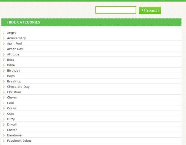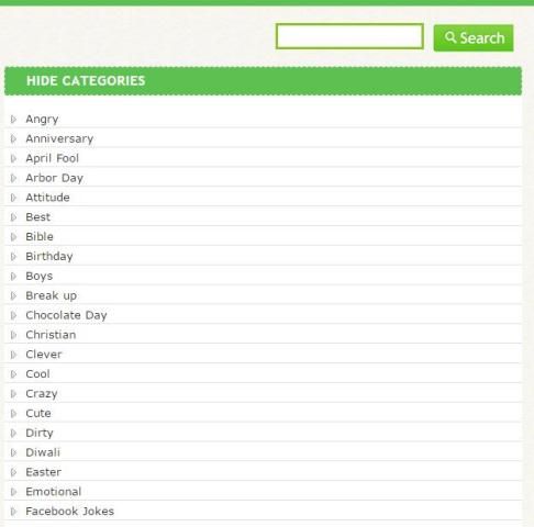 Berbagai kategori adalah: Cinta Status, Status Birds, Lucu Status, Status Penghinaan, dll