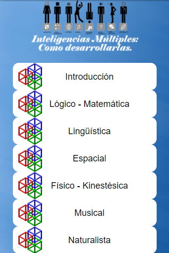 ¿Sabes que son las inteligencias múltiples? ¿Quieres saber cómo desarrollarlas?, con nuestra App inteligencias múltiples: como desarrollarlas, aprenderás que son las inteligencias múltiples, quien las postuló y encontraras ejercicios para desarrollarlas. Entre estas se encuentran la inteligencia lógico - matemática, lingüística, físico - kinestésica, musical, interpersonal, intrapersonal, naturista y espacial.