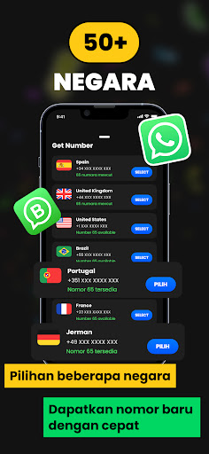 Nomor Virtual memungkinkan Anda mendapatkan nomor telepon kedua dengan mudah dari lebih dari 60 negara, termasuk nomor khusus AS dan Inggris untuk WhatsApp dan WA Business.