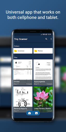 Tiny Scanner mengubah perangkat Anda menjadi pemindai portable PDF. Pemindaian disimpan ke ponsel Anda sebagai gambar atau PDF. Nama dan atur pemindaian Anda ke dalam folder, atau bagikan dengan: