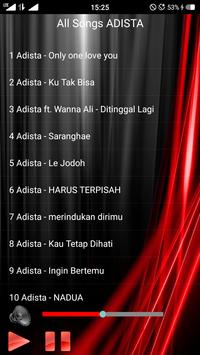 Adista - Only one love you , Adista - Ku Tak Bisa , Adista ft. Wanna Ali - Ditinggal Lagi , Adista - Saranghae , Adista - Le Jodoh , Adista - HARUS TERPISAH , Adista - merindukan dirimu , Adista - Kau Tetap Dihati , Adista - Ingin Bertemu , Adista - NADUA , Adista - Impian Terindah , Adista - Pacar Sejati , Adista - setia , Adista - Bersamamu , Adista - Tulang Rusuk , Adista - Allah Maha Besar , Adista - Rasa Sakit , Adista - Setialah padaku , Adista - Buku harianku , Adista - Selingkuh