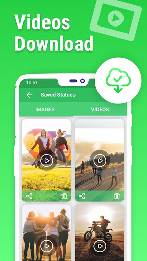-> Status unduh Gambar & Video Anda dapat dengan mudah dibagikan kepada teman, kerabat, keluarga di media sosial apa pun.