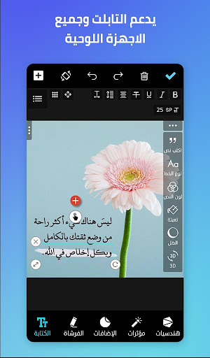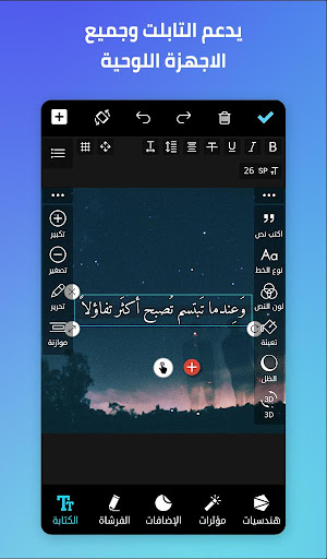 Setelah menindaklanjuti komentar pengguna dan sebagai tanggapan atas permintaan mereka di komentar , aplikasi ini dikembangkan untuk memenuhi kebutuhan pengguna Arab dalam desain dan menambahkan banyak alat dan fitur.