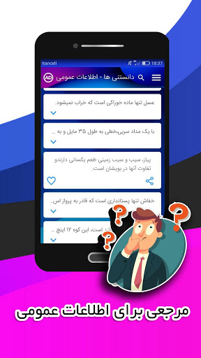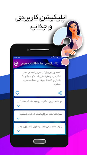 ويژگي هاي اپليکيشن دانستني ها - اطلاعات عمومي :