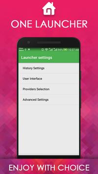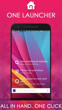 • One Launcher the fastest free launcher will give you a very smooth experience with its boost and quick search. - Just tap the left button to show all the apps quickly or just tap and search your app clearer and more efficient.